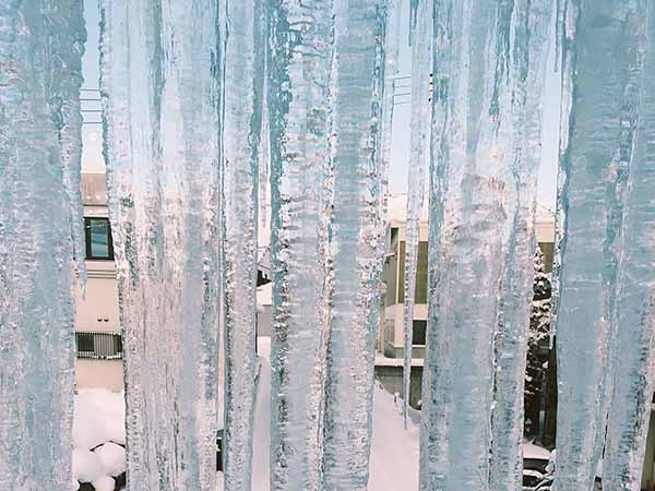 送別会で「外山は寒いところだぞ、布団に氷柱が出来るので、急に起き上がるなよ、喉に突き刺さって怪我をした人もいるそうだ。気をつけろよ。」と驚かされたのを思い出しました。なんと朝の布団の襟元には、長さ4㎝の氷柱が数本垂れ下がっているんです。先端は球のように丸くなっていて、布団の生地が柔らかく動くので、危険はなかったのですが、異常な寒さを目にする事になりました。